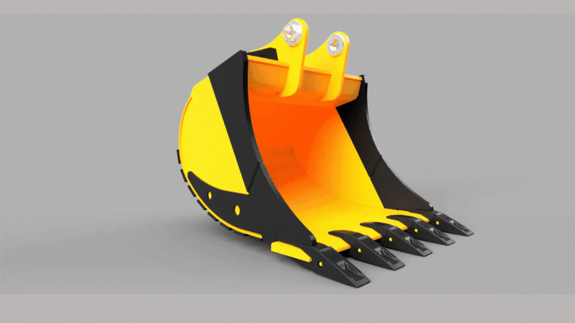 HD- łyżka wzmocnionej konstrukcji, zastosowanie lemiesza głównego oraz bocznych z materiałów o twardości 400-500HB. Przeznaczone do pracy w warunkach trudnych.