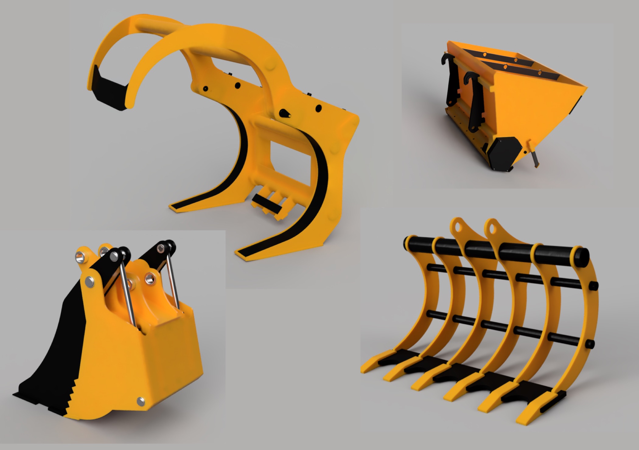 • Łyżki 4w1- przeznaczone głównie do koparko-ładowarek, wyposażone w uchylną przednią część łyżki.